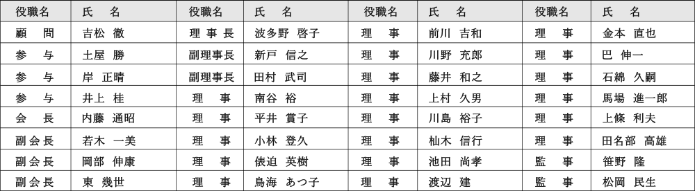 その為にも皆様方との連携を大事にし、ご理解、ご協力のもと新体制の本協会の理事長を務めさせて頂きたいと 思いますのでよろしくお願いいたします。
